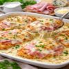 Crème liquide, jambon, escalope, fromage gratiné au four