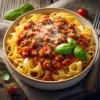 Sauce tomate, viande hachée, basilic