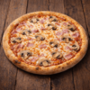 Sauce tomate, Fromage, champignons, chicken, poivrons, olives