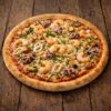 Sauce tomate, Fromage, cocktail de fruits de mer, ail, persil