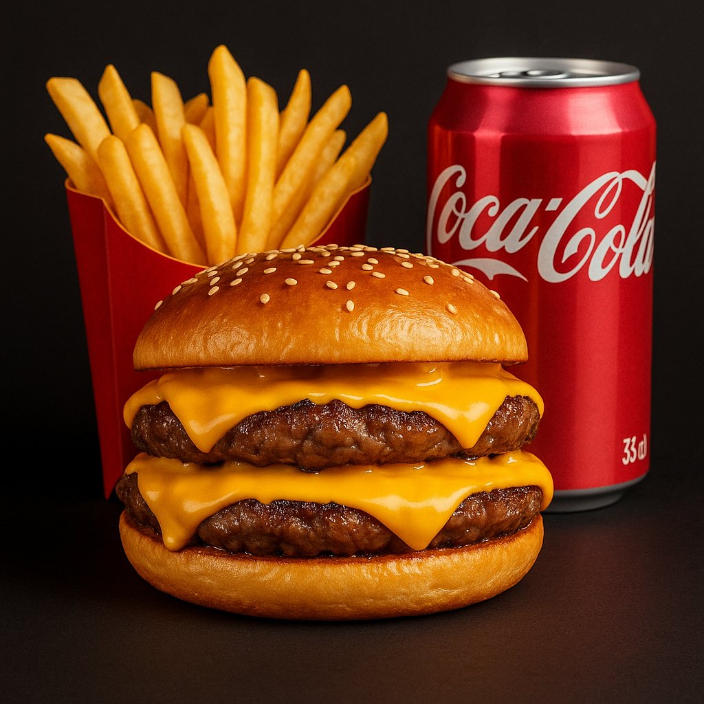 2 Steaks, double, fromage + frites + 1 boisson 33cl