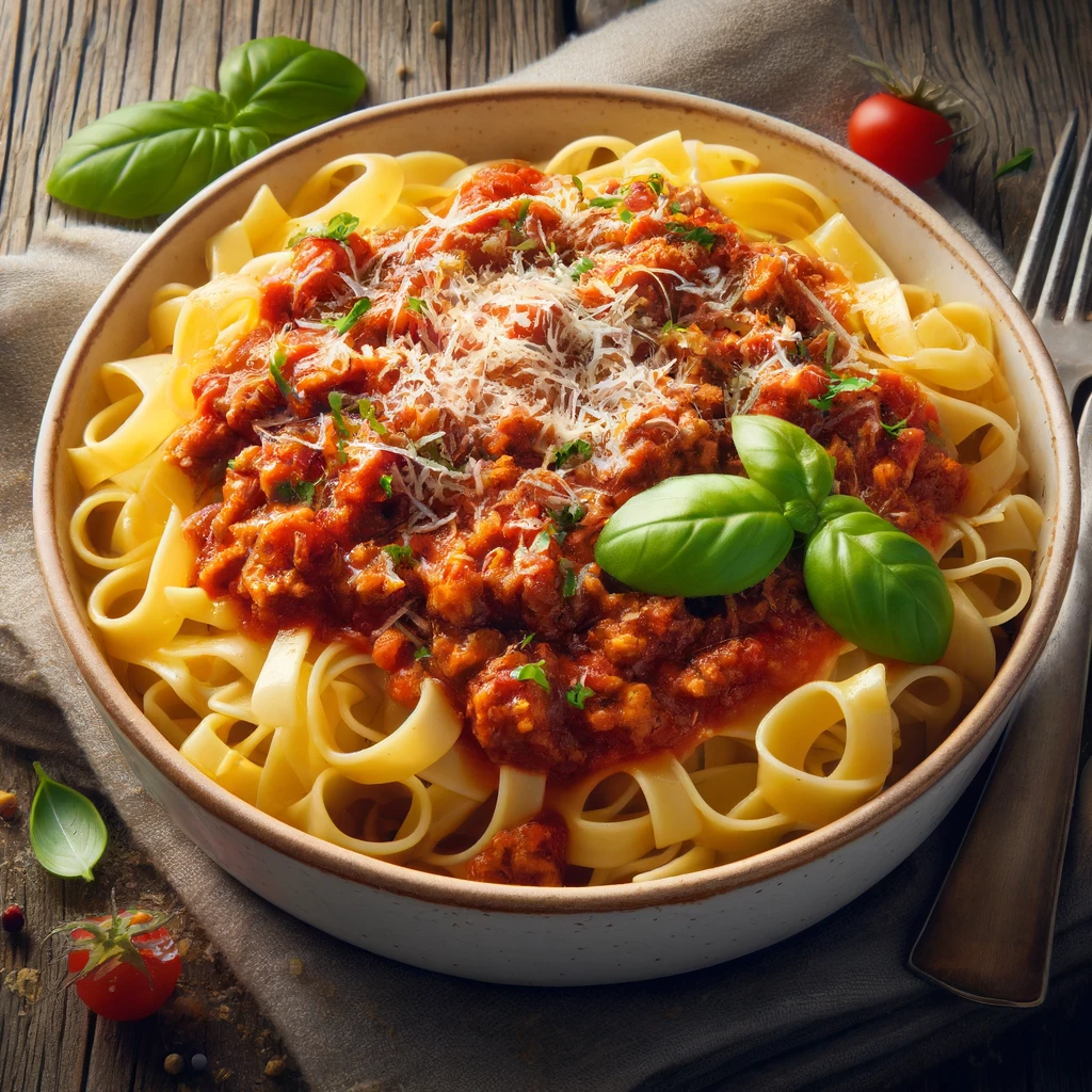 Sauce tomate, viande hachée, basilic