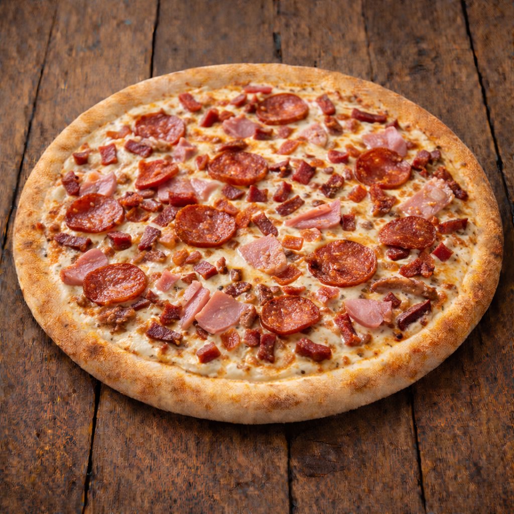 Sauce tomate, Fromage, champignons, chicken, poivrons, olives